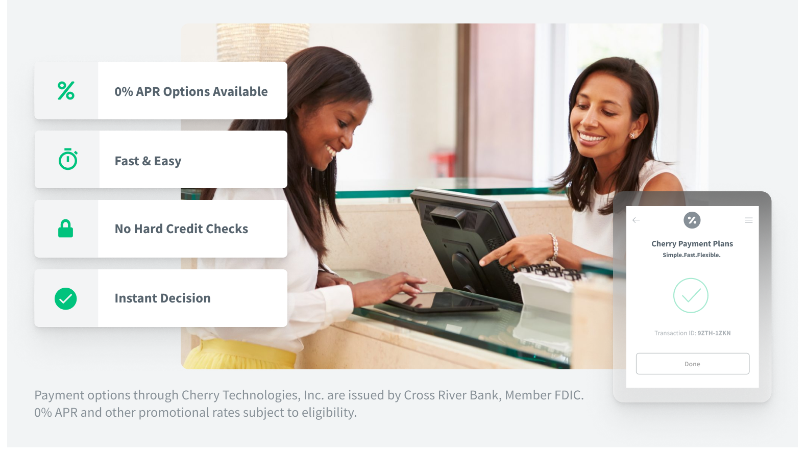 Payment options through Cherry Technologies, Inc. are issued by the following lending partners: https://withcherry.com/lending-partners/.